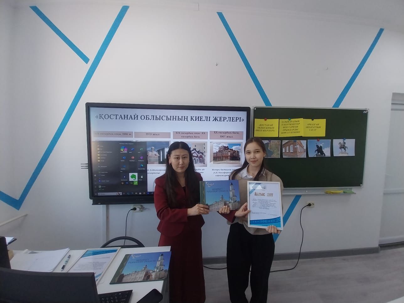 Ақпараттық сағат барысында оқушылар Қостанай облысының киелі жерлері жайында мағлұматтар алып, тақырып бойынша түрлі тапсырмаларды орындады. Іс-шара соңында музей қызметкері оқушыларға естелік сыйлықтар табыстады.