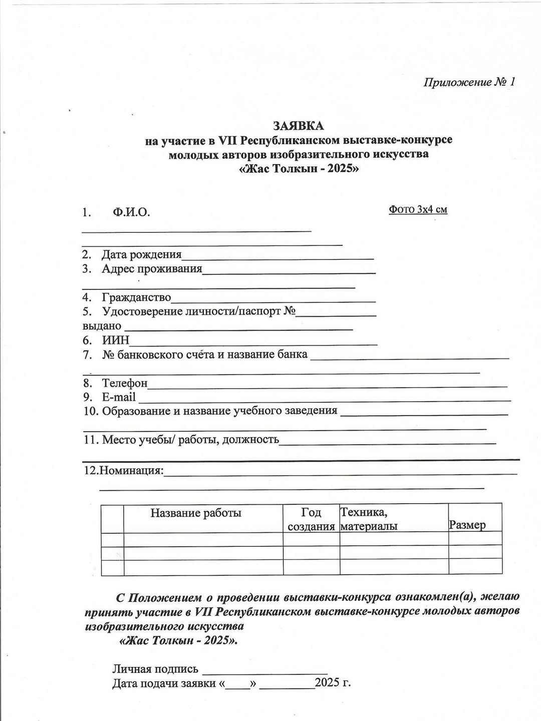 Положение о проведении VII Республиканского выставки-конкурса молодых авторов изобразительного искусства «Жас толкын» - 2025