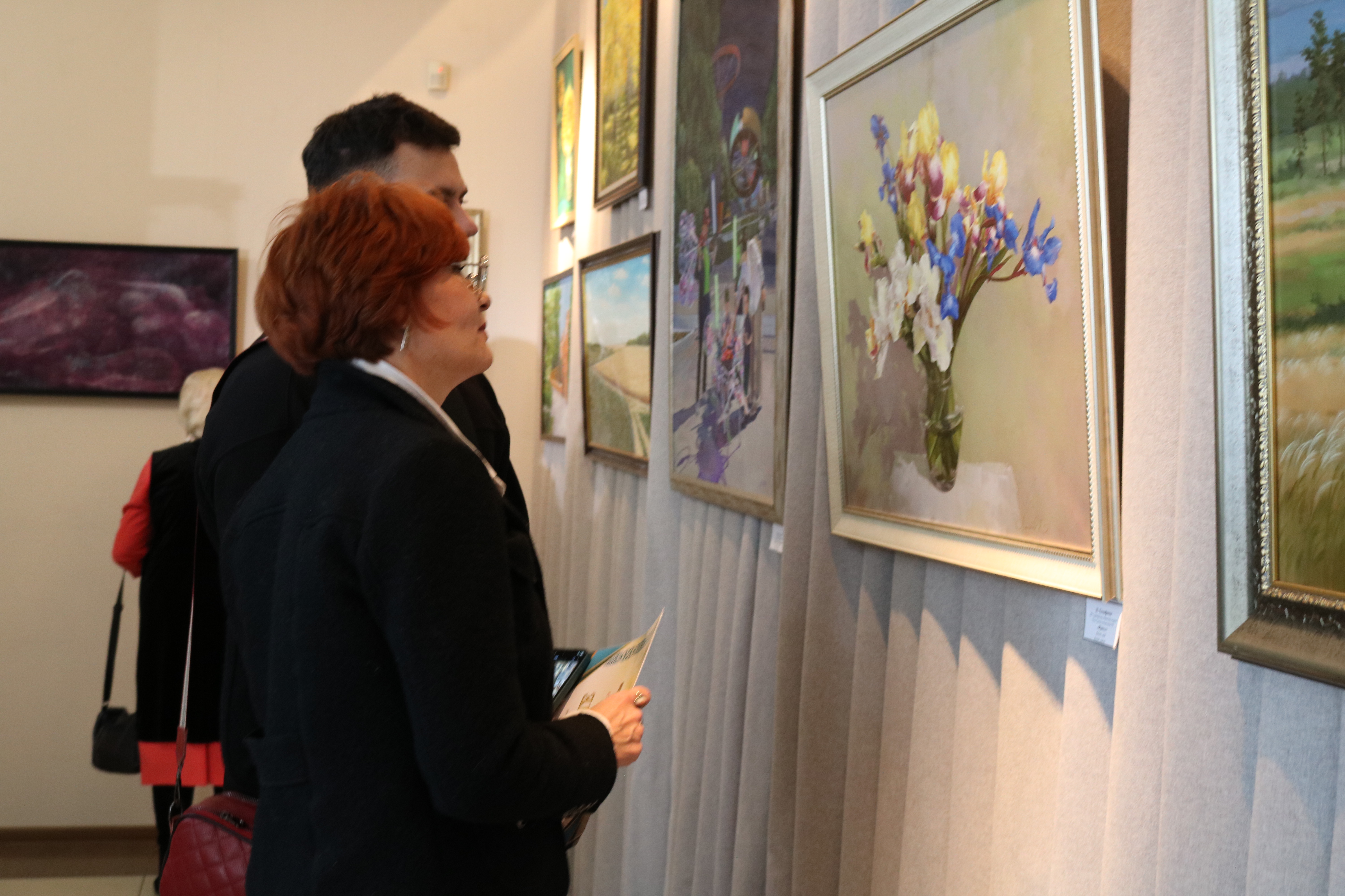 Всего представлено 187 оригинальных работ: 93 на первом этаже, 94 на втором. Экспозиция включает картины известных костанайских художников, таких как: Николай Торшин, Вадим Быков, Наталья Халифаева, Андрей Арискин, Лариса Дмитриева, Олег Кусков и Анатолий Счастливцев. В их числе