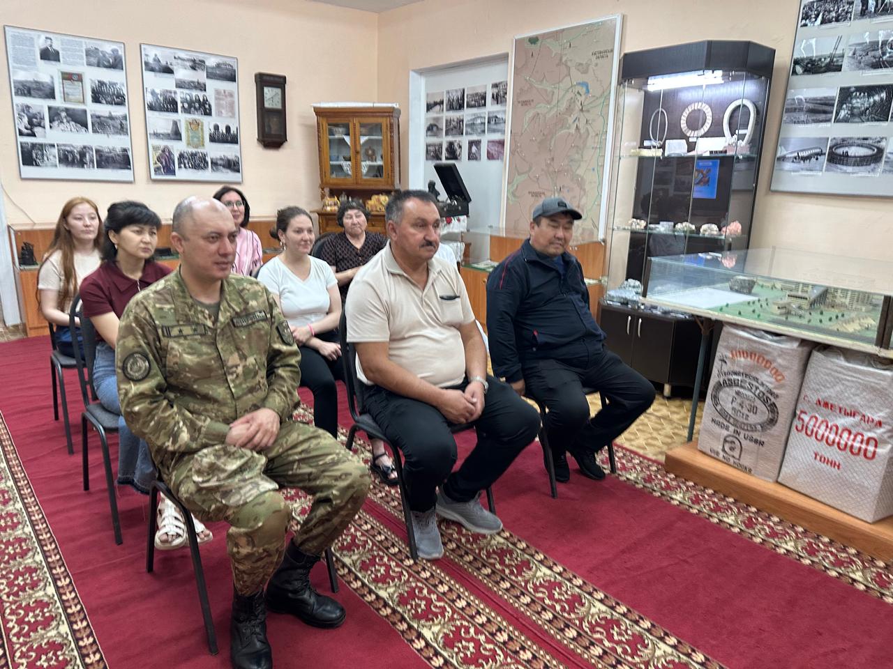 В канун празднования Дня государственной символики Казахстана сотрудники музея провели познавательный час «Государственные символы Казахстана и история его развития» для служащих РГУ "Отдел по делам обороны Житикаринского района Костанайской области". В рамках мероприятия была представлена презентация о Государственном флаге, гербе и гимне Казахстана, их авторах и символике. Просмотрен видеоролик с исполнением гимна, проведена мини-викторина. Также обсуждалась роль символов в патриотическом воспитании граждан и военных. Участники проявили интерес, активно включались в обсуждение. Мероприятие прошло содержательно и было положительно оценено.