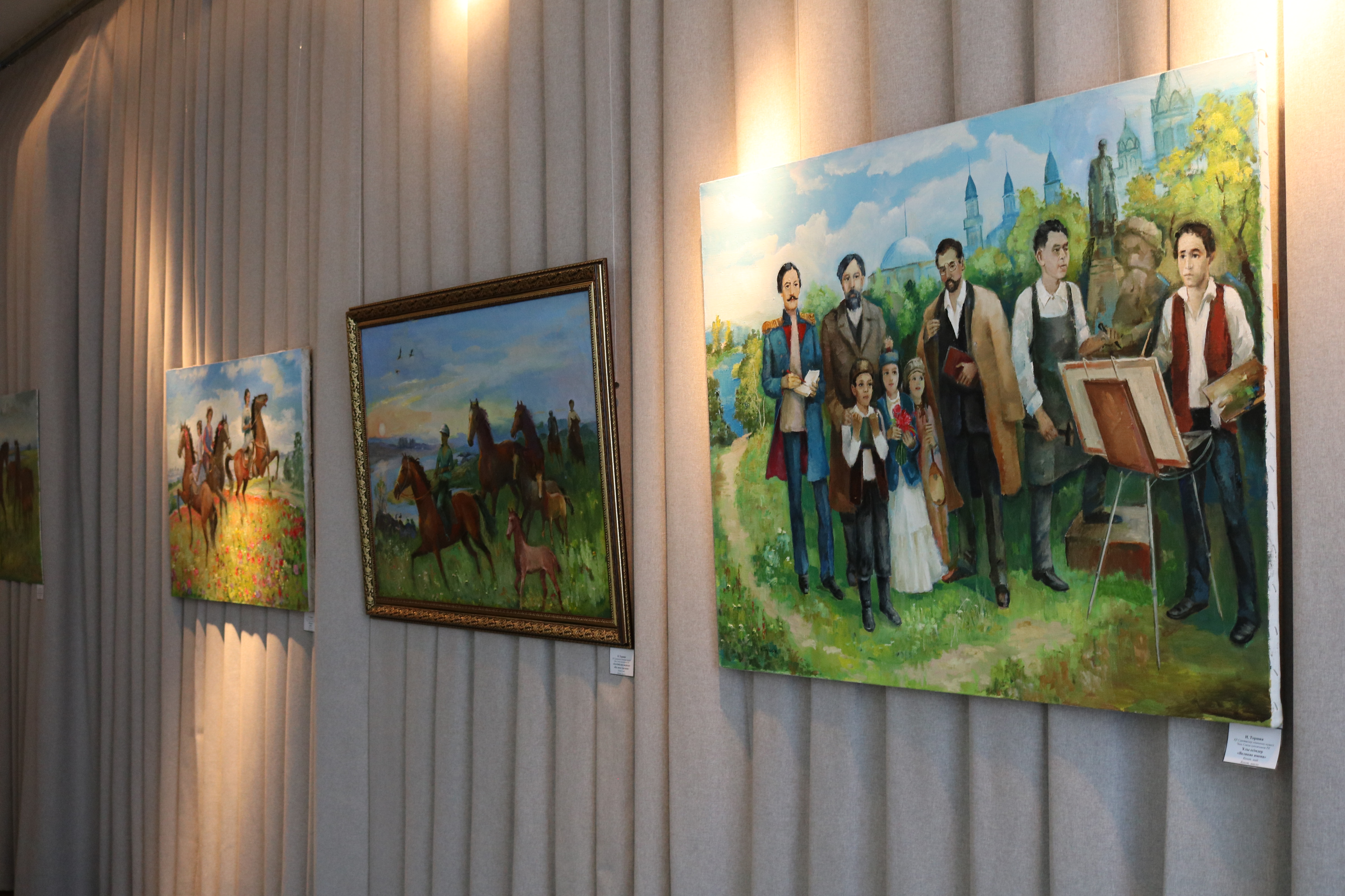 A total of 187 original works are presented: 93 on the ground floor, 94 on the second floor. The exhibition includes paintings by famous Kostanay artists such as Nikolai Torshin, Vadim Bykov, Natalia Khalifayeva, Andrey Ariskin, Larisa Dmitrieva, Oleg Kuskov and Anatoly Shchastyantsev. Among them are