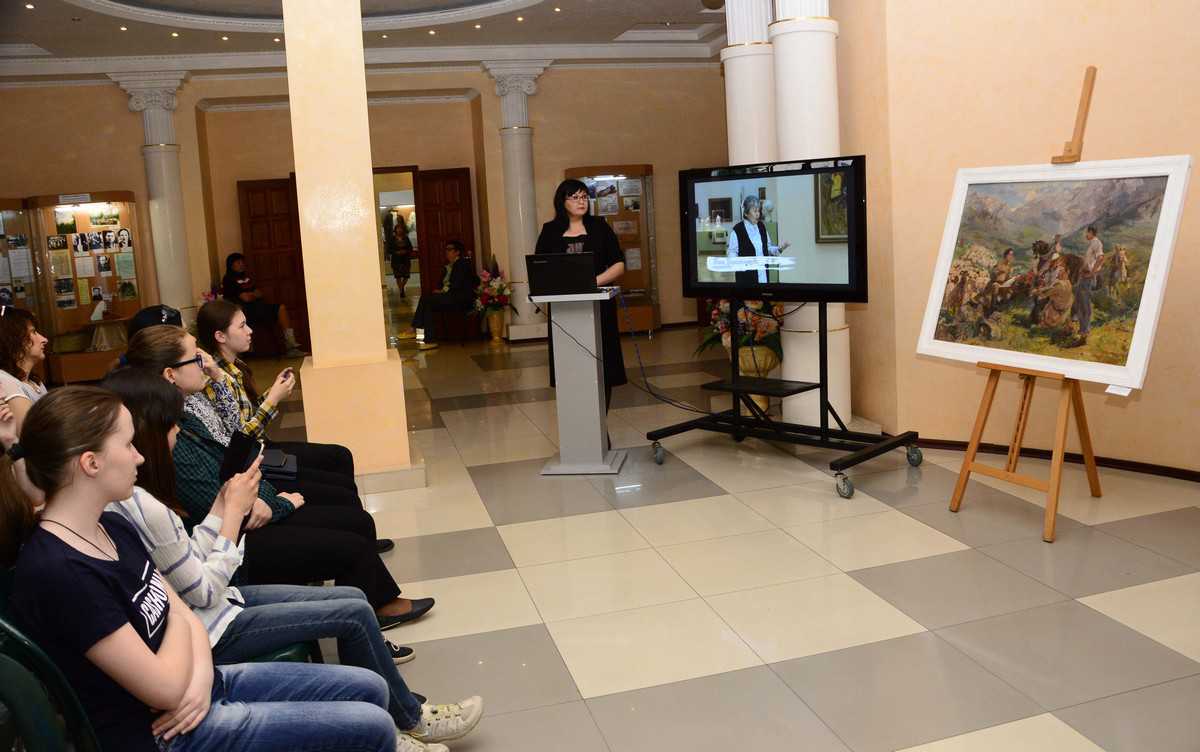 Вниманию зрителей - учащихся Художественной школы им. Русина были представлены подлинные произведения живописца - «Приезд агитатора на джайляу» и «Юные» из фондов музея.