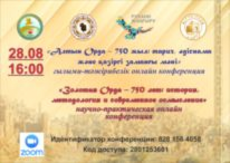 Қостанай облысы әкімдігінің мәдениет басқармасы және Қостанай облыстық тарихи-өлкетану музейі 2020 жылдың 28 тамызында сағат 16.00-де «Алтын Орда - 750 жыл: тарих, әдіснама және қазіргі заманғы мәні» атты ғылыми-тәжірибелік онлайн конференция өткізеді