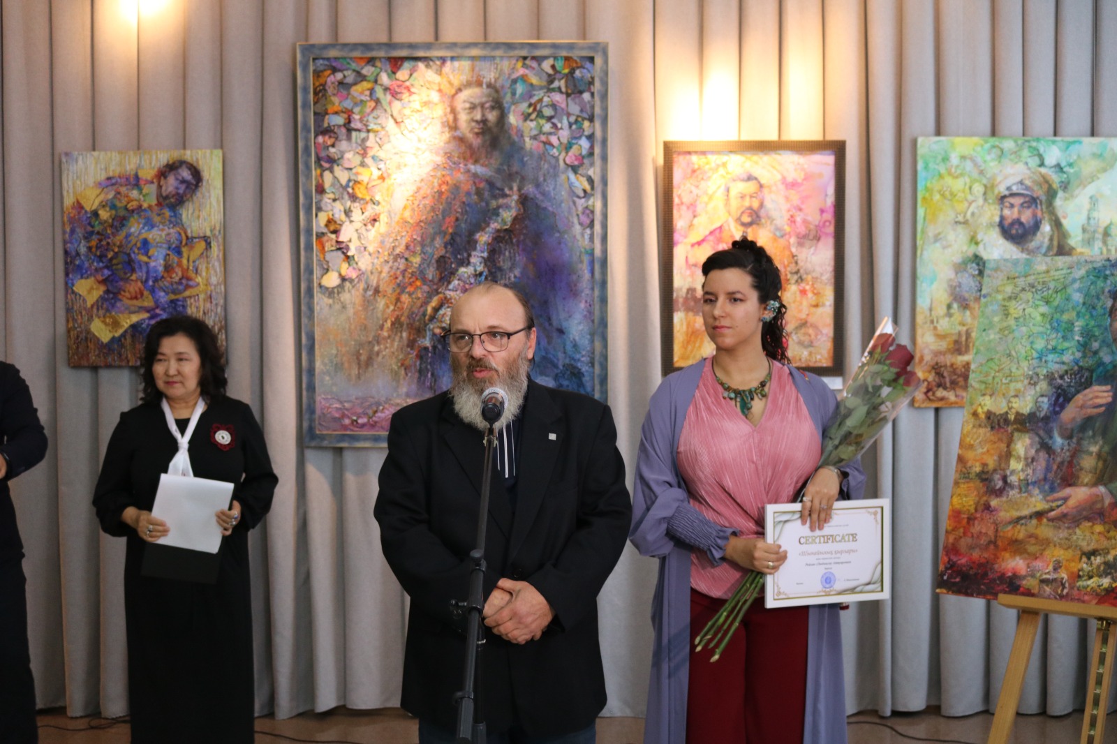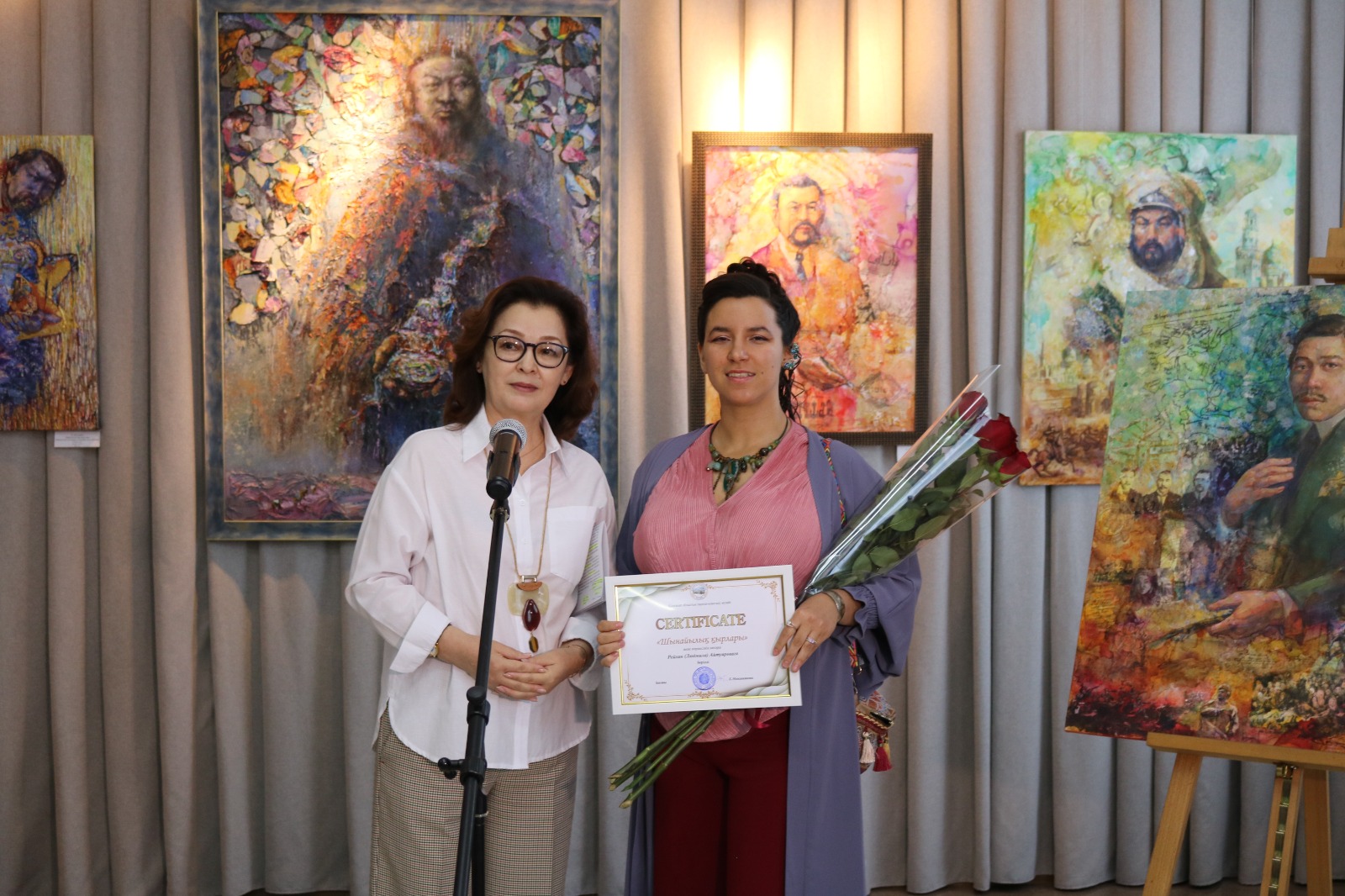 Көрме аясында залда суретші Р.Айтуарова музейге келушілерге кескіндемеден шеберлік сабағын өткізді.