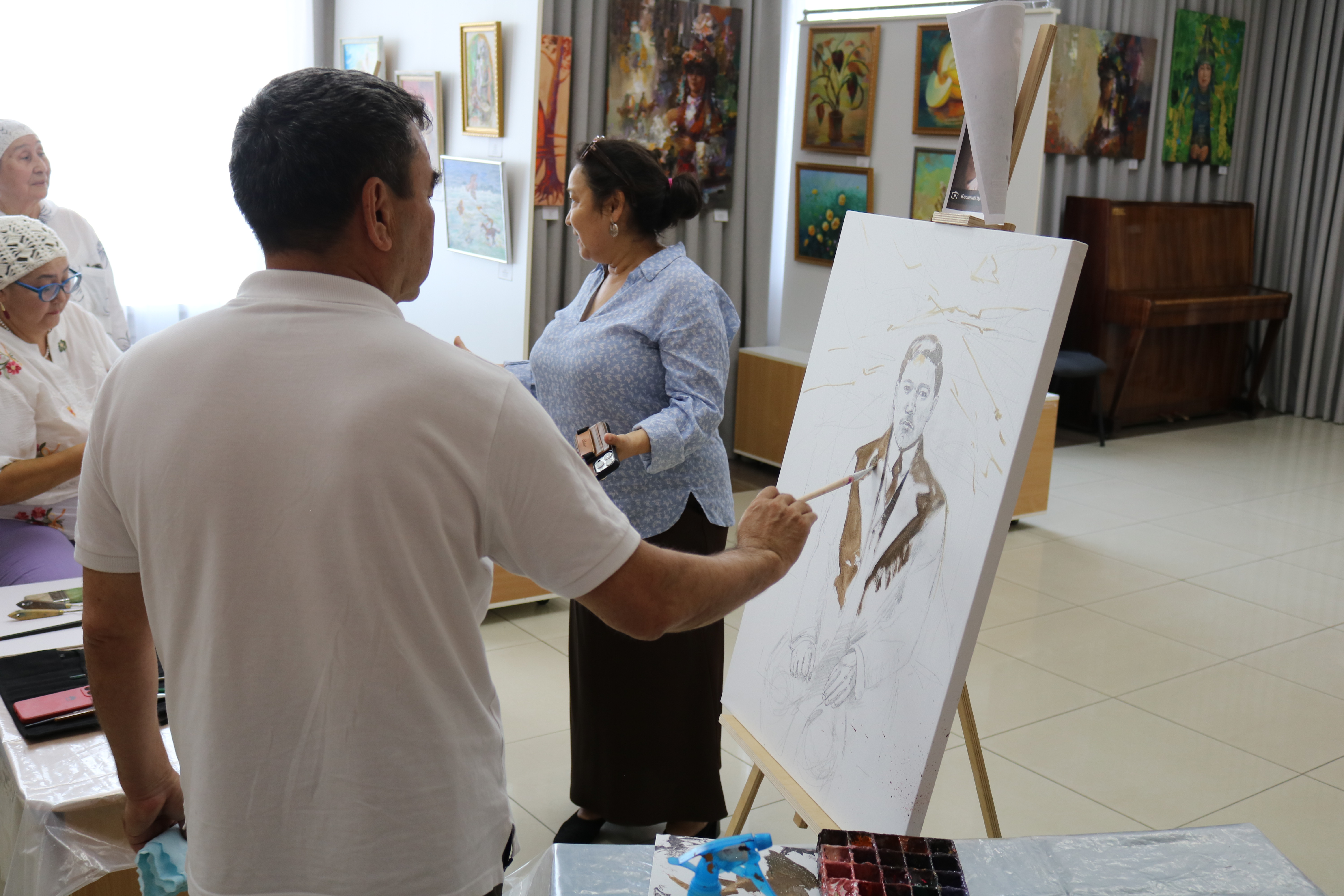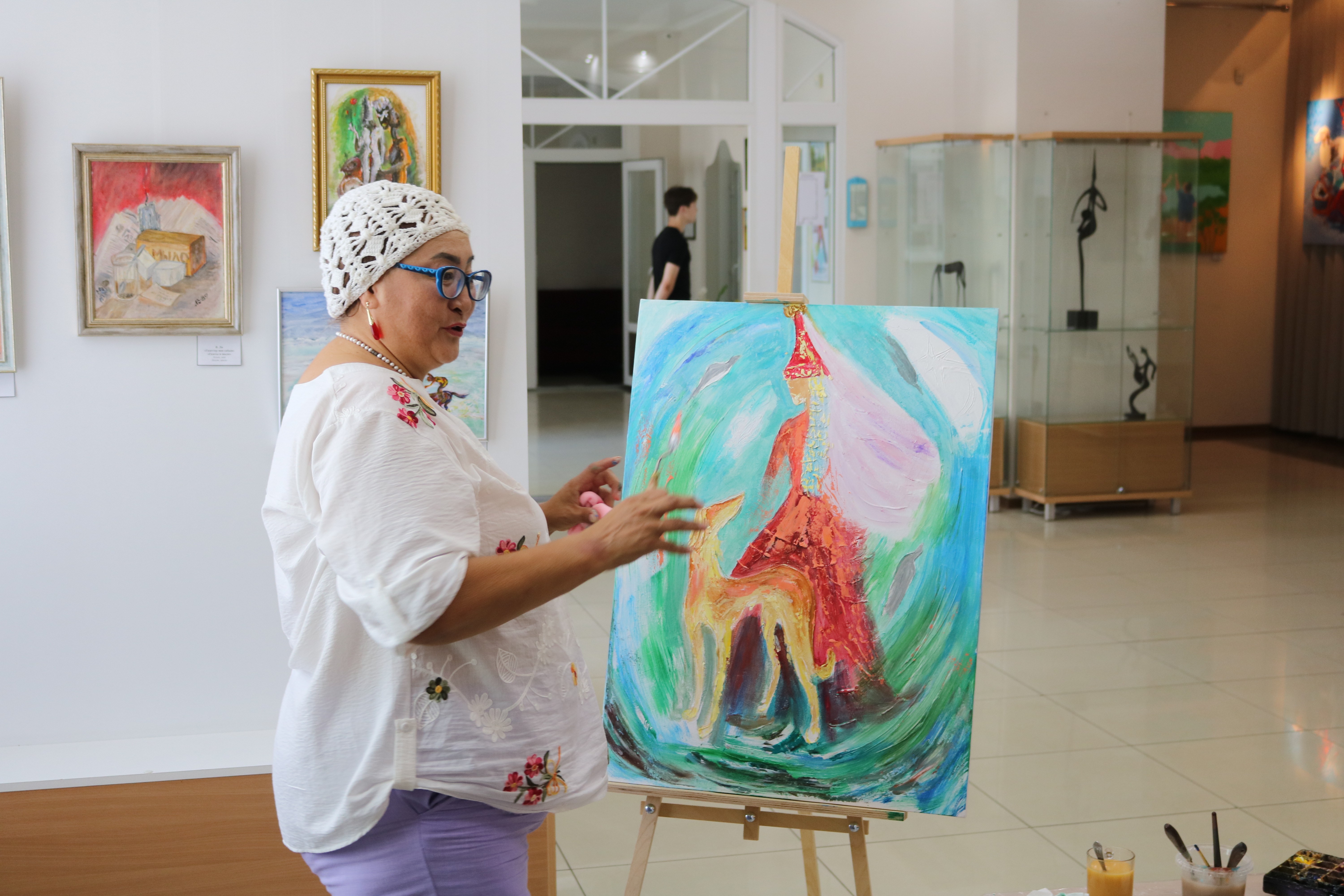 Халықаралық «Ұлы Дала керуені» көшпелі көрмесінің қатысушылары Ә.Баяндин, А.Тасмағамбетовалардың шеберлік сабақтары.