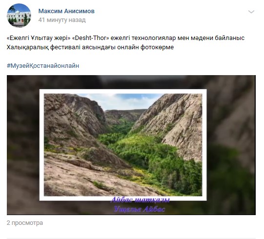 В рамках третьего Международного фестиваля древних технологий и культурных коммуникаций «Desht-Thor» Костанайский областной историко-краеведческий музей организовал экспонирование персональной фотовыставки «Древняя земля Улытау» известного казахстанского фотографа и путешественника Дмитрия Ругиса.