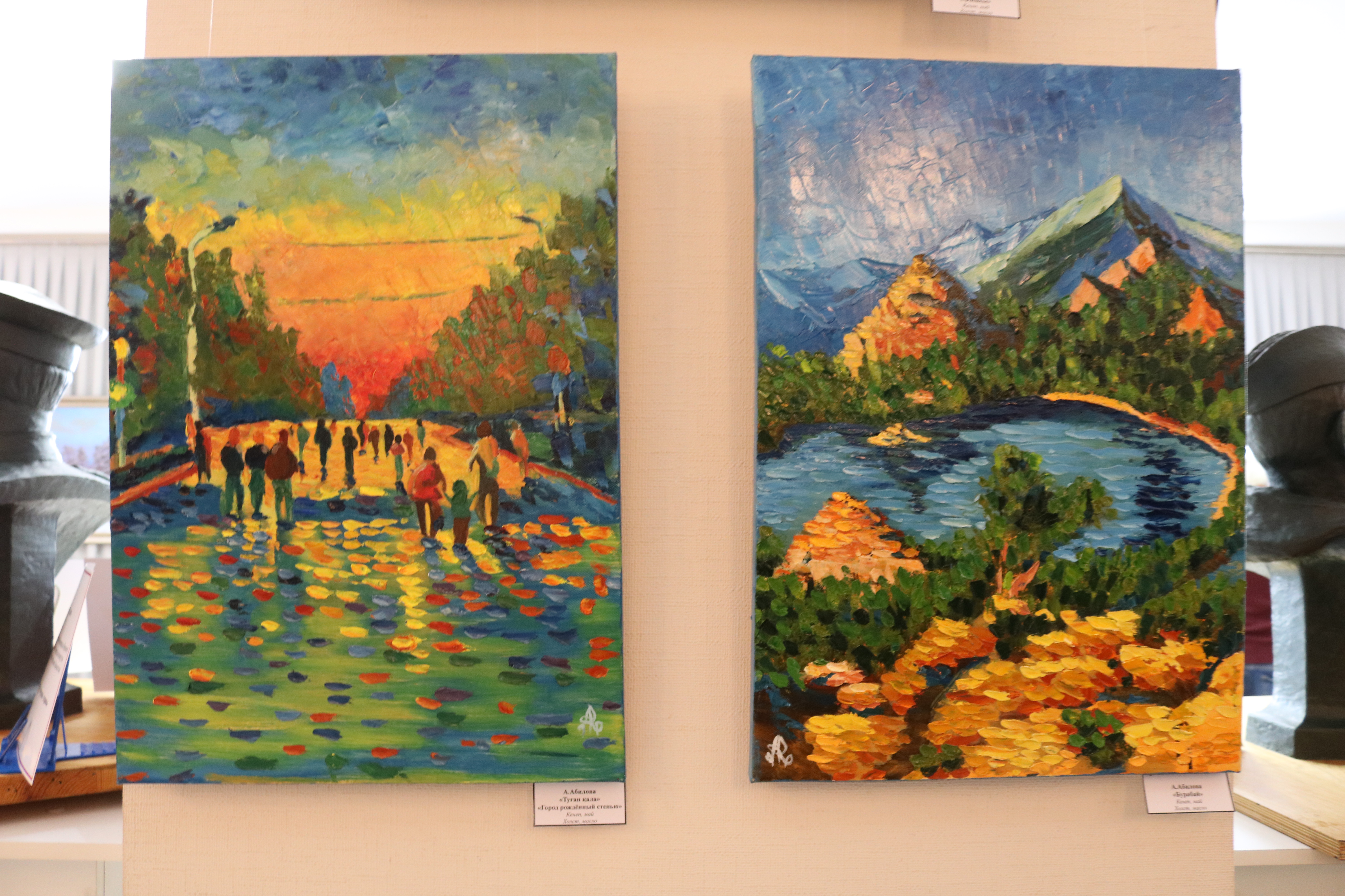 работы дебютантки 2025 года Алии Абиловой. Графические работы Вадима Быкова, Баян Баталовой, Сергея Ли и Екатерины Артемьевой гармонично дополняют выставочное пространство.