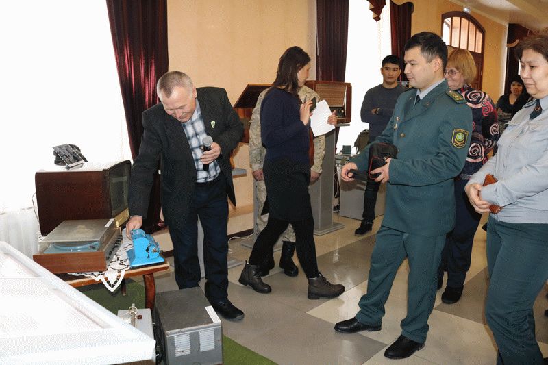 Сергей Петрович Яковец провел увлекательную экскурсию по выставке, ответил на многочисленные вопросы посетителей - военнослужащих в/ч №2039, 2039а, 2031 Пограничной службы Комитета национальной безопасности Республики Казахстан и студентов юридического факультета КГУ им.А. Байтурсынова.